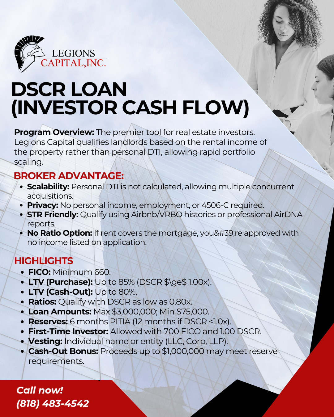 The premier tool for real estate investors. Legions Capital qualifies landlords based on the rental income of the property rather than personal DTI, allowing rapid portfolio scaling.