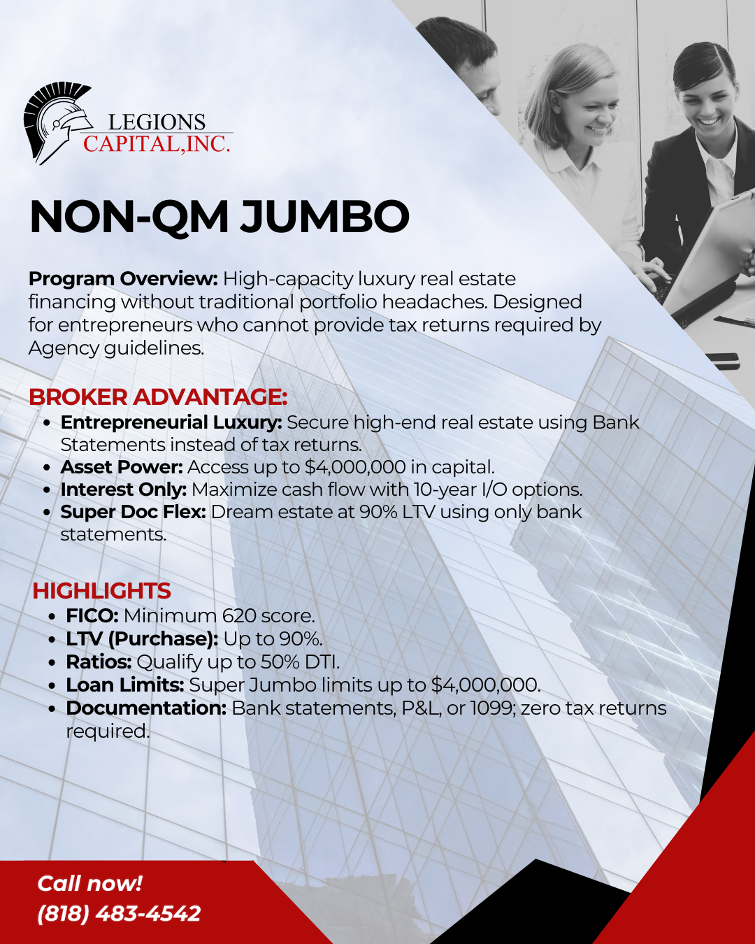 High-capacity luxury real estate financing without traditional portfolio headaches. Designed for entrepreneurs who cannot provide tax returns required by Agency guidelines.